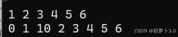 {vector<int> v;//尾插v.push_back(1);v.push_back(2);v.push_back(3);v.push_back(4);v.push_back(5);v.push_back(6);for (auto e : v){cout << e << " ";}cout << endl;//头插v.insert(v.begin(), 0);//在中间插入v.insert(v.begin()+2, 10);for (auto e : v){cout << e << " ";}