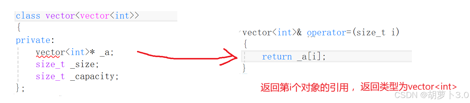 要真正的掌握这道算法题,我们就要对vector的底层有一点的了解(后面会介绍的vector的底层),我们vector其实和我们在数据结构中学的顺序表的是差不多的,既然是这样的话,那我们是不是就可以写出vector的私有成员:
