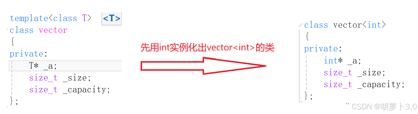 - 先用int 实例化出vector<int>的类