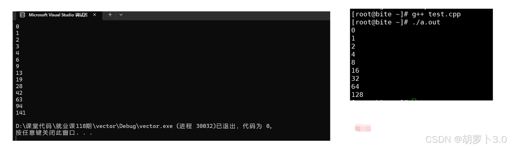 - G++ :2 倍扩容(如 capacity 从 4→8→16→32...)。