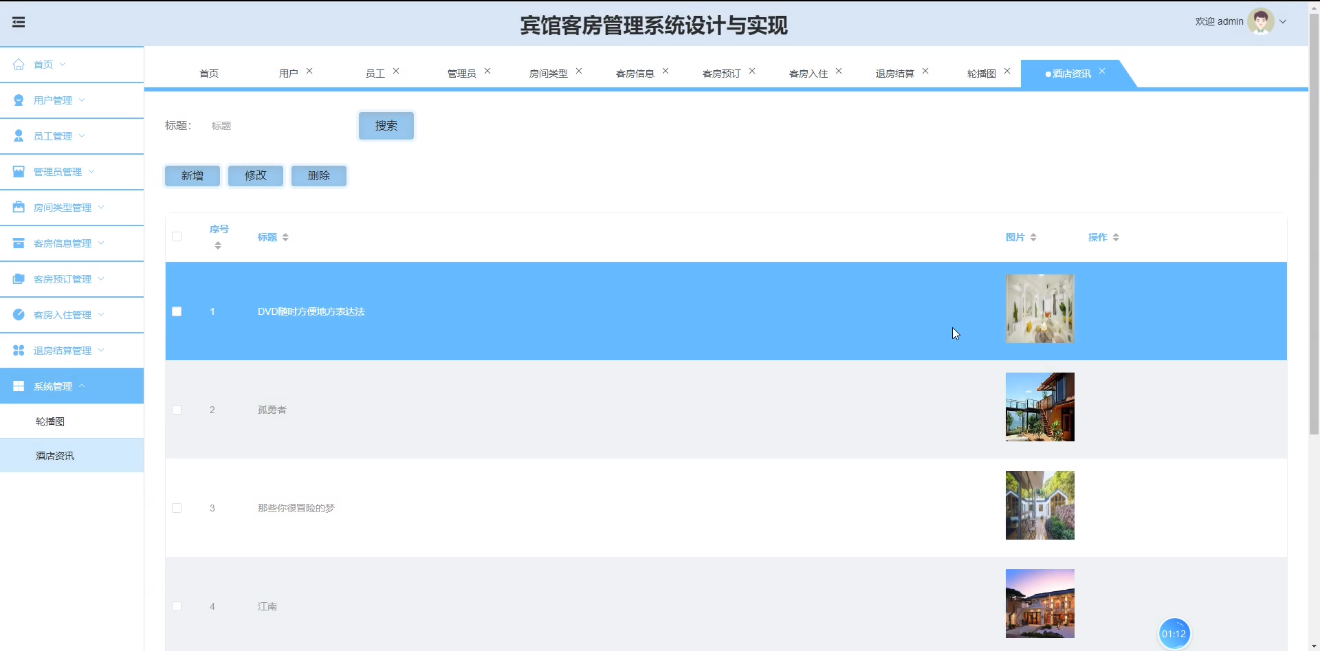 springboot088-宾馆客房管理系统