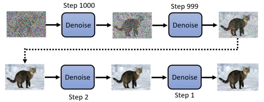 这就像一位雕塑家:他面对的是一块形状不规则的石料(纯噪声),然后通过不断地凿除多余的部分(去噪),最终雕出一尊精美的雕像(目标图像)。