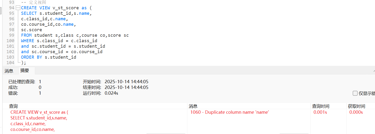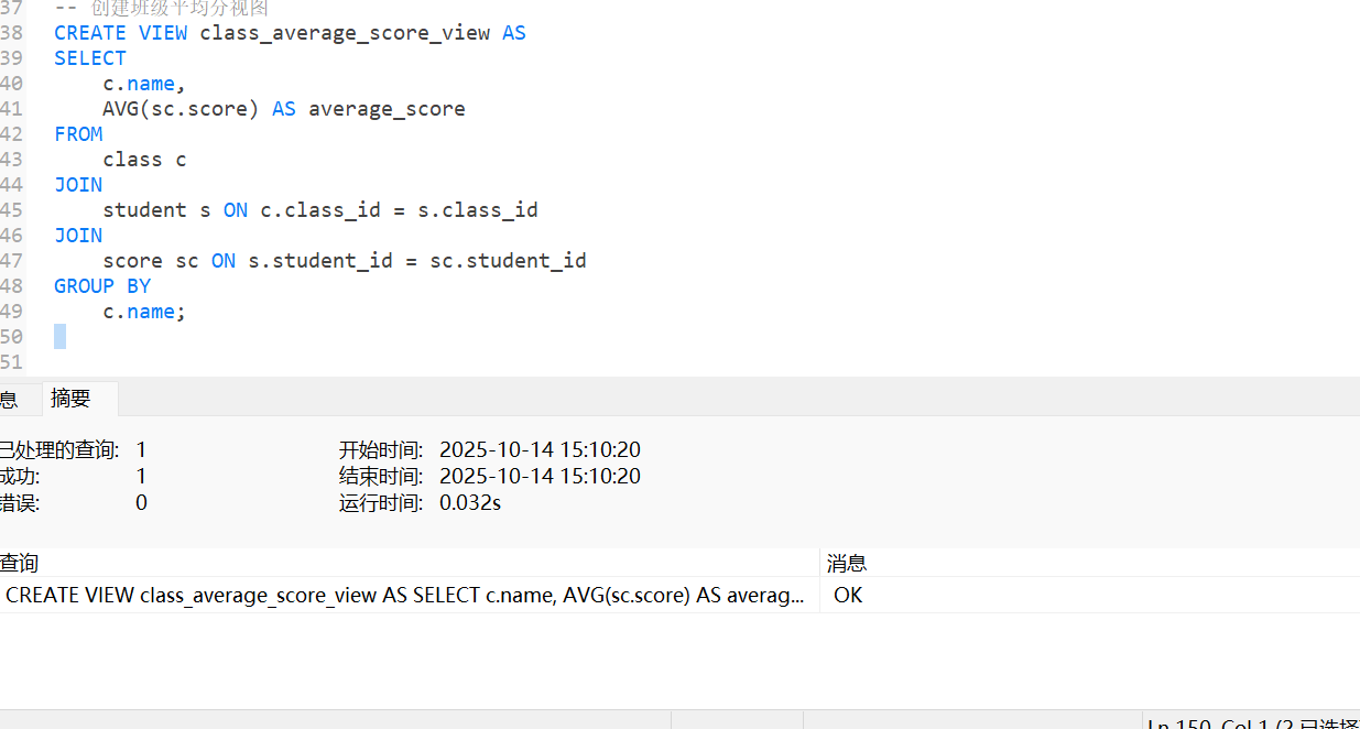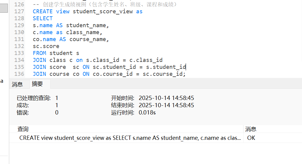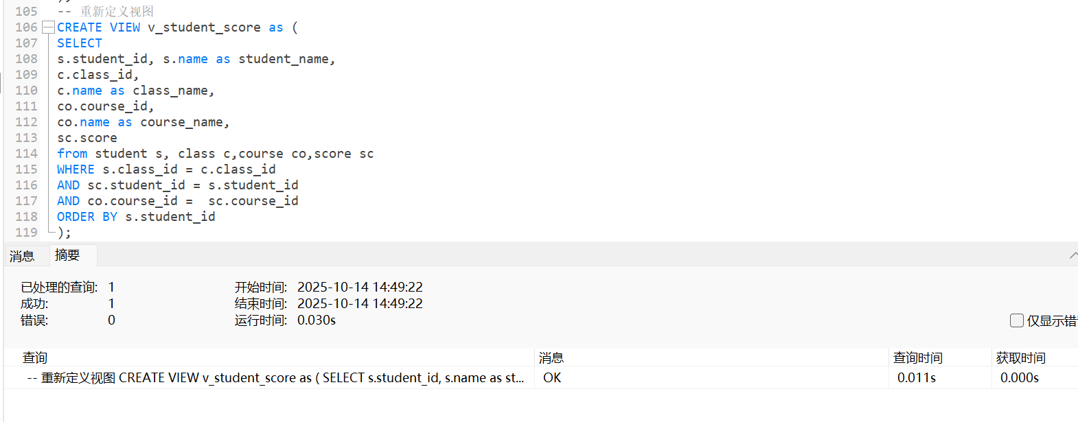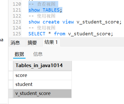 接下来我们就要查看一下我们写的视图是否存储在我们创建的数据库中