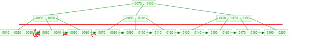2.非叶子节点的值都包含在叶子节点中,MySQL非叶子节点只保存了对子节点的引用,没有保存真实的数据,所有真实的数据都保存在叶子节点中。