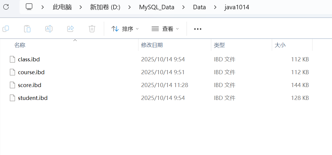 每创建一张生成一个保存数据的文件称为独立表空间文件。