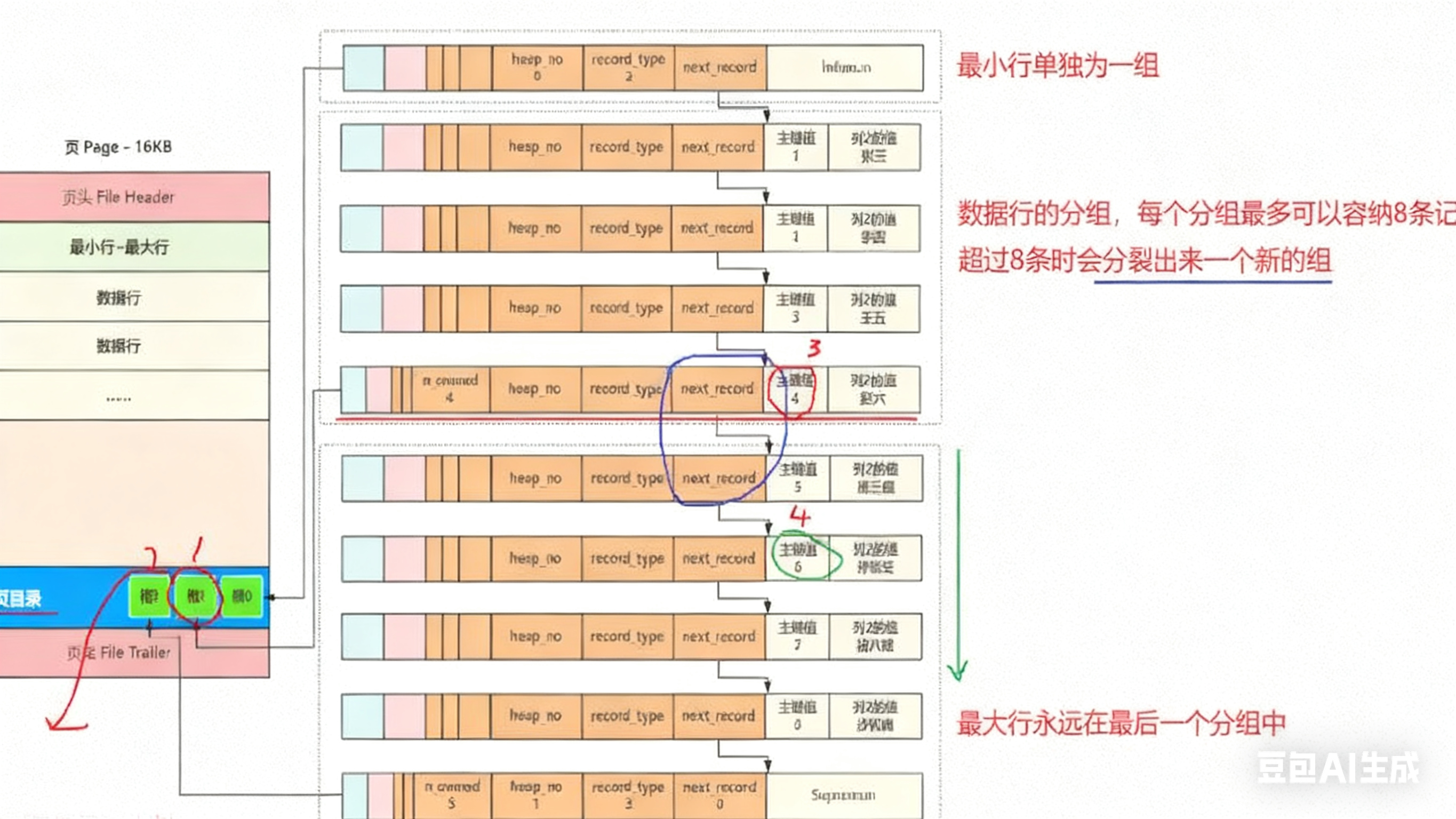 创建分组时会在页目录中创建一个槽,槽的数量与分组的数据是一致的,槽会指定对应分组的最后一条记录,同时保存这条记录的主键值。