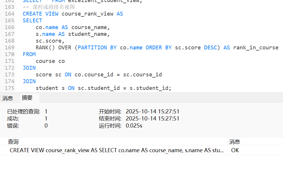 在数据库中, 视图(View)是一个虚拟的表 ,它本身并不存储实际的数据,而是基于一个或多个实际表(或其他视图)的查询结果动态生成的。简单来说,视图就像是一个“窗口”,通过这个窗口,用户可以看到数据库中特定的数据,但看不到(或不需要关心)底层表的完整结构。