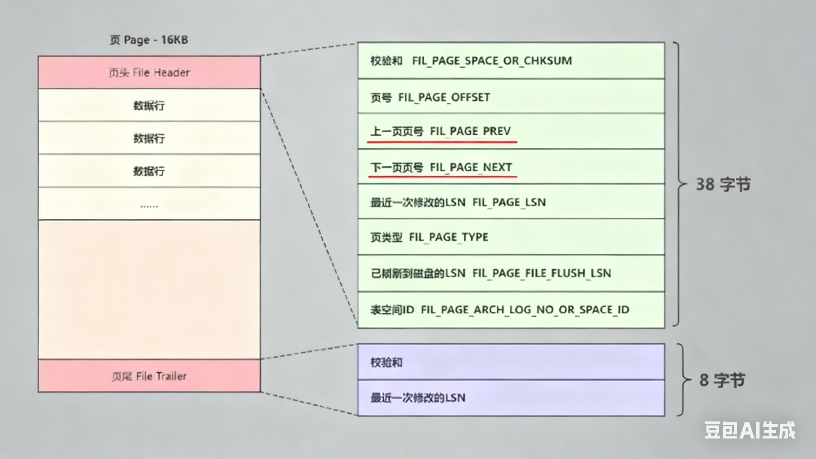 页文件头和页文件尾中包含的信息,如下图所示:当前页文件的重要信息。