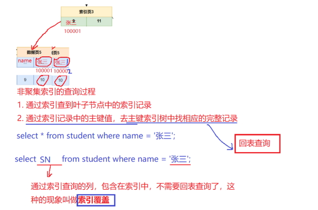 InnoDB使用这个主键值来搜索聚集索引中的行,这个过程称为回表查询。