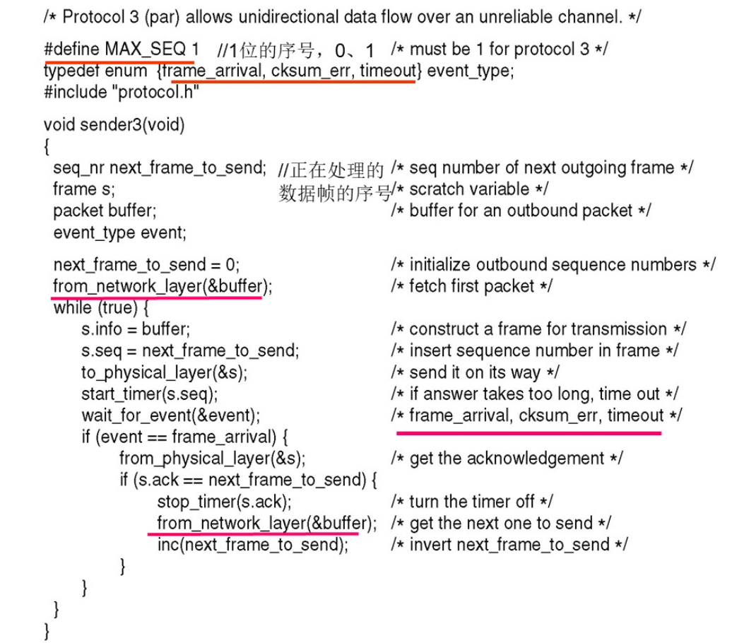 start_timer(s.seq) / stop_timer(s.ack) | 为已发送但未确认的帧启动/停止超时计时 | s.seq 、s.ack 、next_frame_to_send |