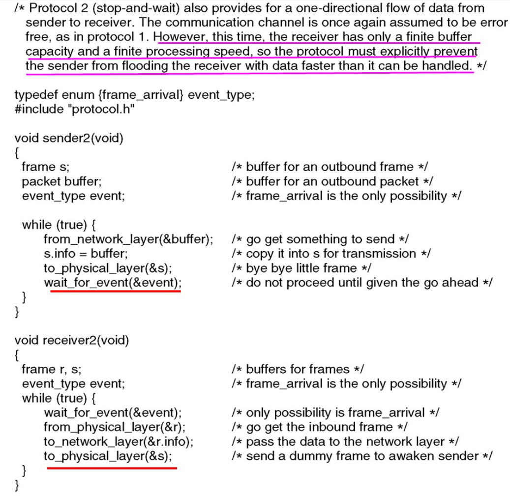 wait_for_event(frame_arrival) → from_physical_layer → to_network_layer