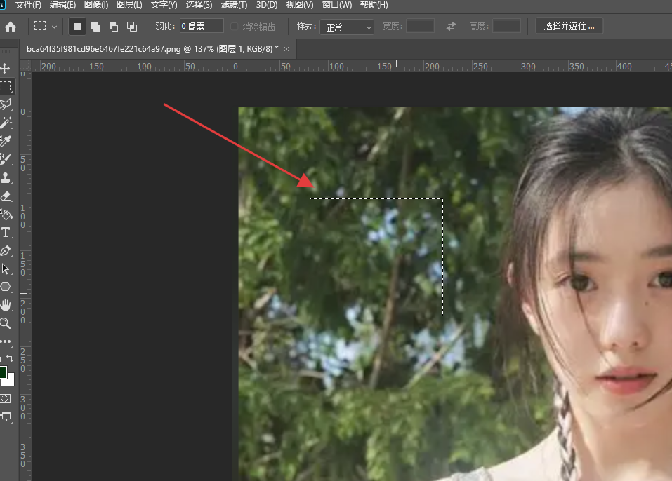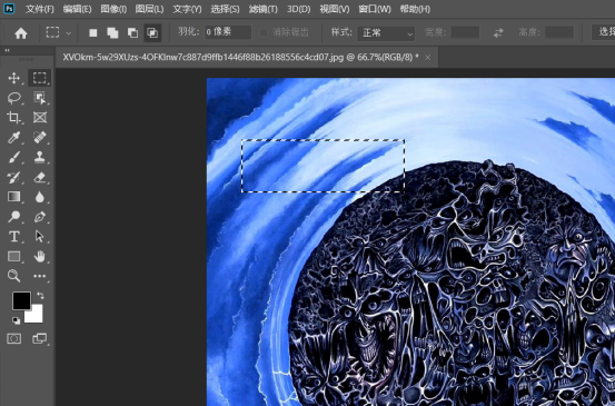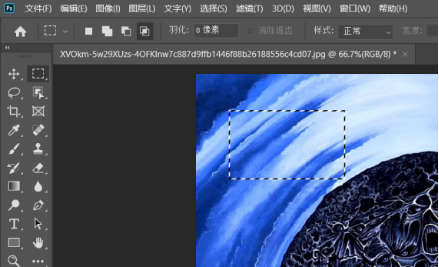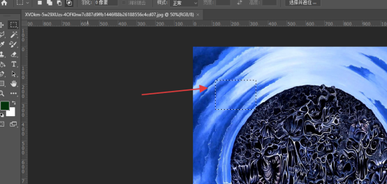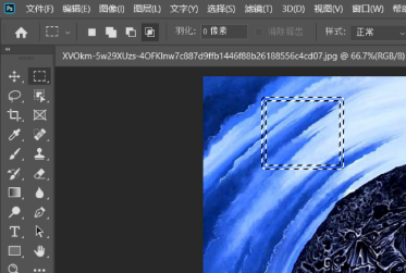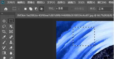 矩形选区即在图片中选择出矩形的区域。首先导入图片。首先点击PS软件中选区工具,然后选择图片上的区域: