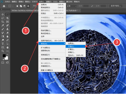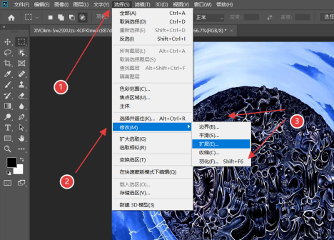 点击上面工具区的选择,然后点击修改,再点击羽化: