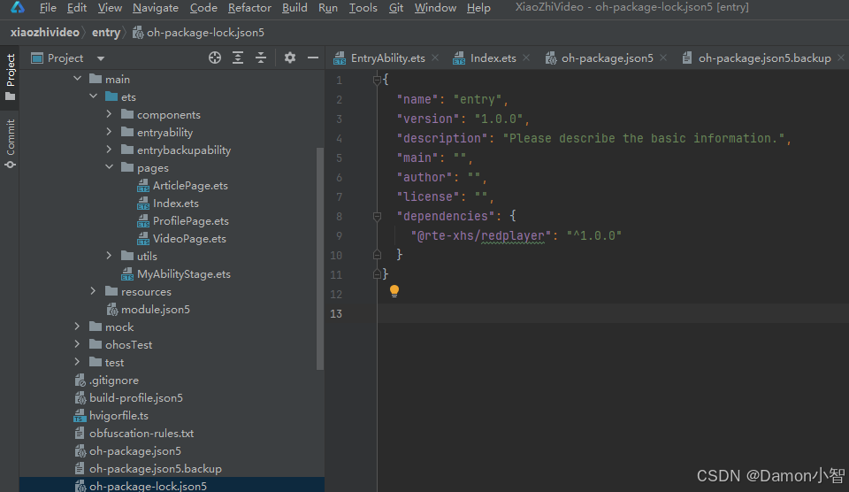 这条命令会将 RedPlayer 包下载并集成到项目中,使我们可以在应用中直接使用 RedPlayer 的 API。安装完成后,可以在项目的 entry/oh-package.json5 文件中添加依赖配置,以确保项目构建时正确引入 RedPlayer: