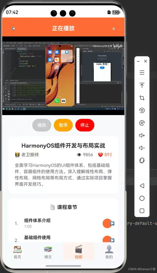 RedPlayer 的核心优势在于跨平台支持、高性能播放、低延迟缓冲以及丰富的 API 接口。通过将 RedPlayer 集成到《鸿蒙轻松学》中,我们不仅能够实现高质量的视频播放,还能提供丰富的用户交互功能,例如进度控制、音量调节、播放速度设置和断点续播等功能,从而提升整体用户体验。本文将从环境配置、组件实现到性能优化,详细介绍 RedPlayer 在 HarmonyOS 应用中的实践经验。