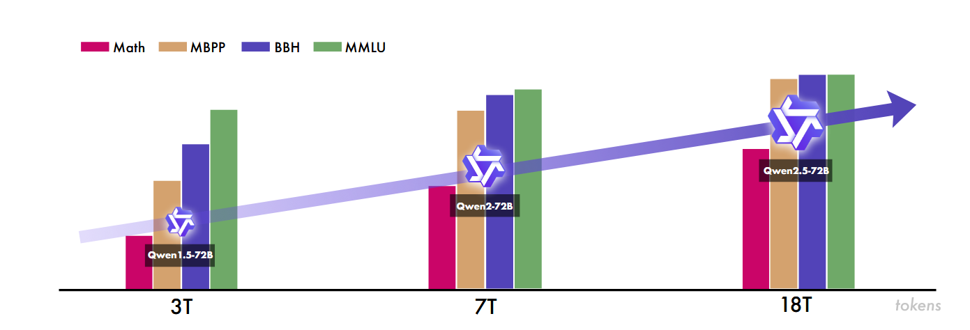 高质量的预训练数据集从之前的 7 万亿个 token 扩展到了 18 万亿个 token。