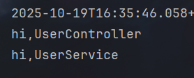 public class UserController {private UserService userService;@Autowiredpublic void setUserService(UserService userService) {this.userService = userService;}public void sayHi() {System.out.println("hi,UserController");userService.sayHi();}