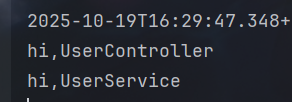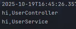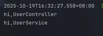 public class UserController {//属性注入@Autowiredprivate UserService userService;public void sayHi() {System.out.println("hi,UserController");userService.sayHi();}