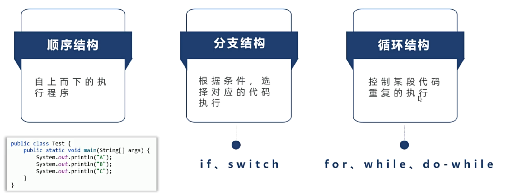 在C语言模块很详细的讲过分支语句。Java和C语言的分支完全一样。所以这里就简单提一下。