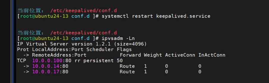 3.模拟 Director A 故障(如停止 Director A 的 keepalived 服务或关闭 Director A 服务器),观察 VIP 是否自动漂移到 Director B 上,客户端是否能继续通过 VIP 访问 Web 服务,实现高可用。之后恢复 Director A,观察 VIP 是否漂移回 Director A(根据配置的抢占模式),记录整个实验步骤、配置文件内容。