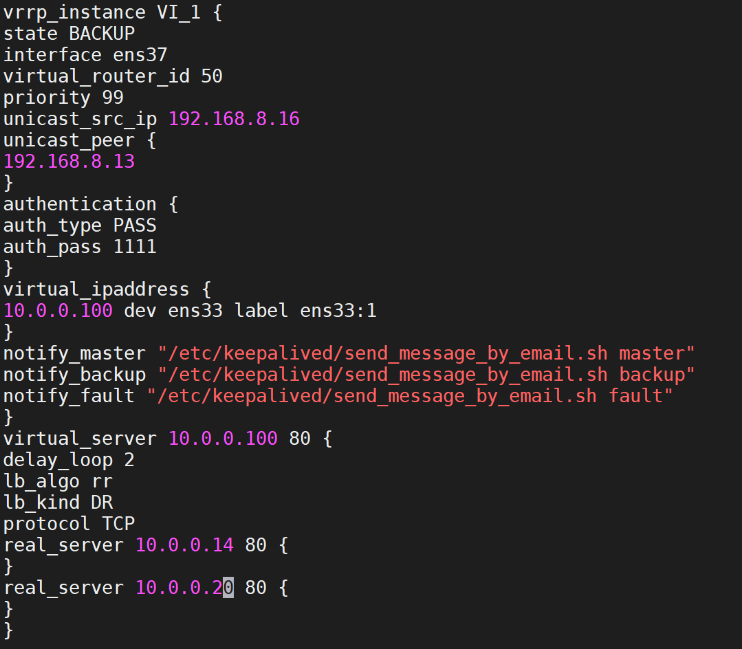 脚本触发邮件发送。例如,当节点切换为 MASTER 时,执行notify_master