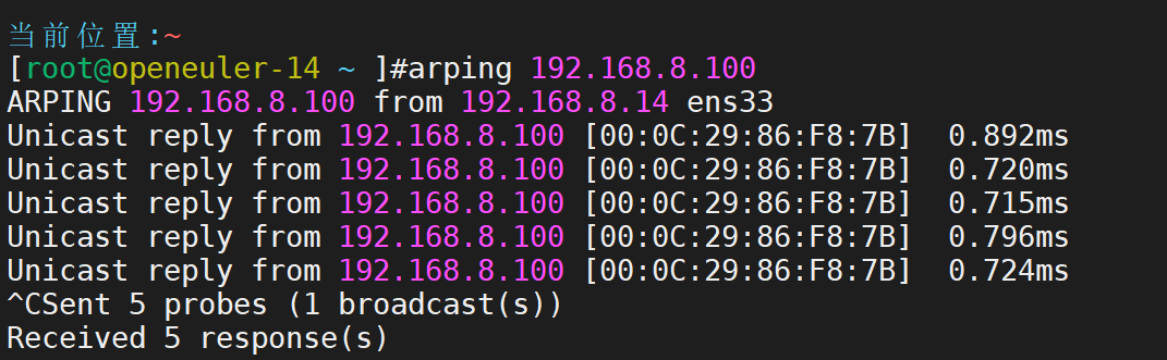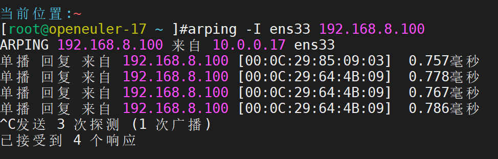 在任意一台 192.168.8.0 网段中,进行arp测试