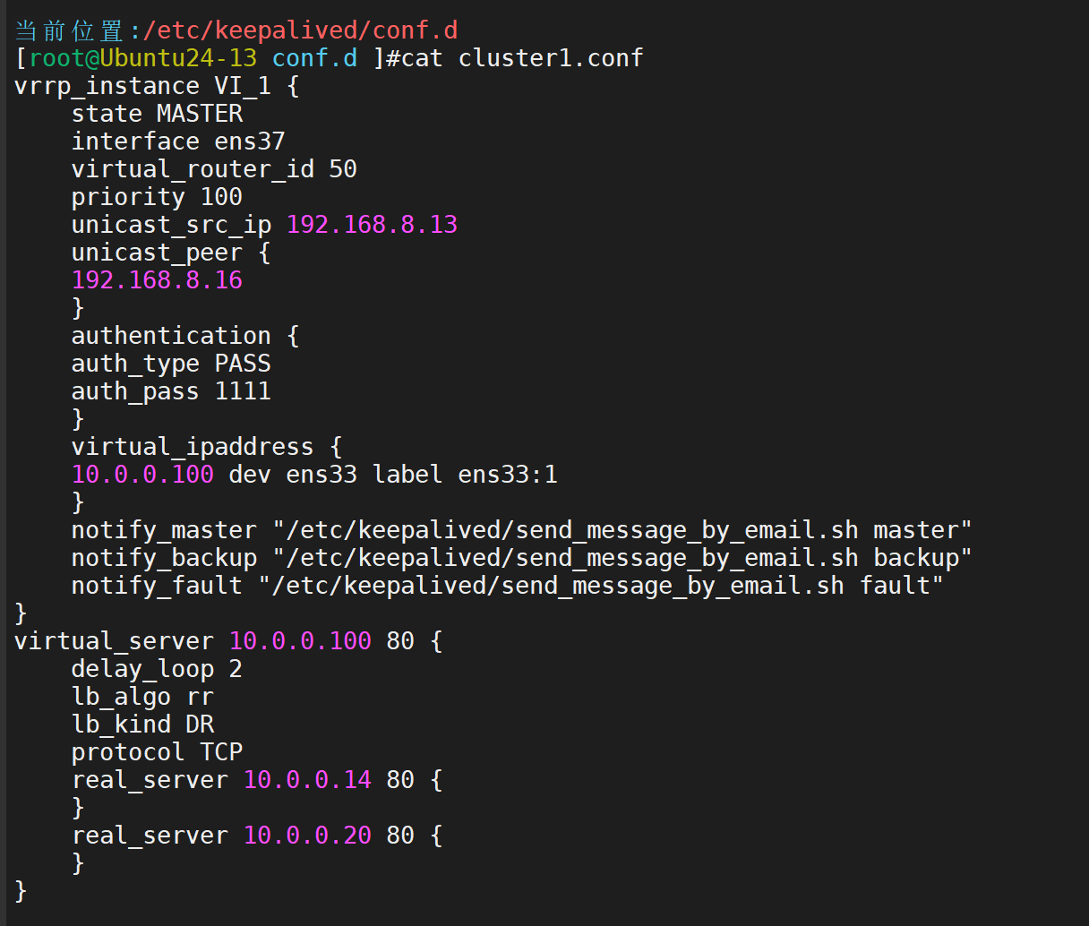 核心配置项:在 keepalived 配置文件(/etc/keepalived/keepalived.conf