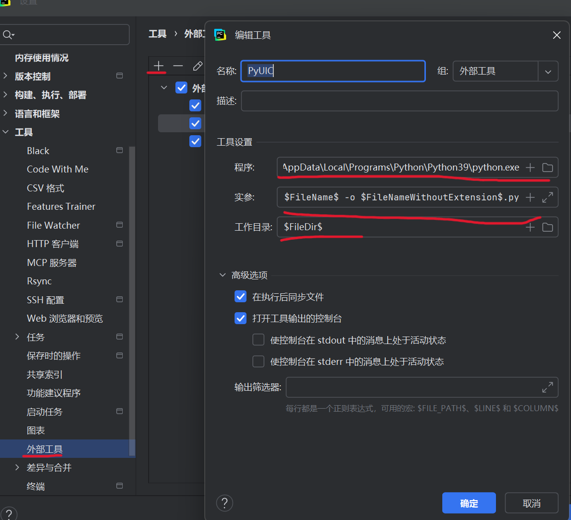 实参为-m PyQt5.uic.pyuic $FileName$ -o $FileNameWithoutExtension$.py