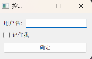 from PyQt5.QtWidgets import (QApplication, QWidget, QVBoxLayout, QHBoxLayout, QLabel, QPushButton, QLineEdit, QCheckBox)class Example(QWidget):def __init__(self):super().__init__()self.initUI()def initUI(self):vbox = QVBoxLayout()# 用户名输入区域label = QLabel('用户名:')self.input = QLineEdit()hbox1 = QHBoxLayout()hbox1.addWidget(label)hbox1.addWidget(self.input)# 复选框self.checkbox = QCheckBox('记住我')# 按钮btn = QPushButton('确定')btn.clicked.connect(self.onButtonClick)# 添加所有控件vbox.addLayout(hbox1)vbox.addWidget(self.checkbox)vbox.addWidget(btn)self.setLayout(vbox)self.setWindowTitle('控件示例')self.resize(300, 150)def onButtonClick(self):username = self.input.text()remember = self.checkbox.isChecked()print(f'用户名: {username}, 记住我: {remember}')if __name__ == '__main__':app = QApplication(sys.argv)ex = Example()ex.show()sys.exit(app.exec_())