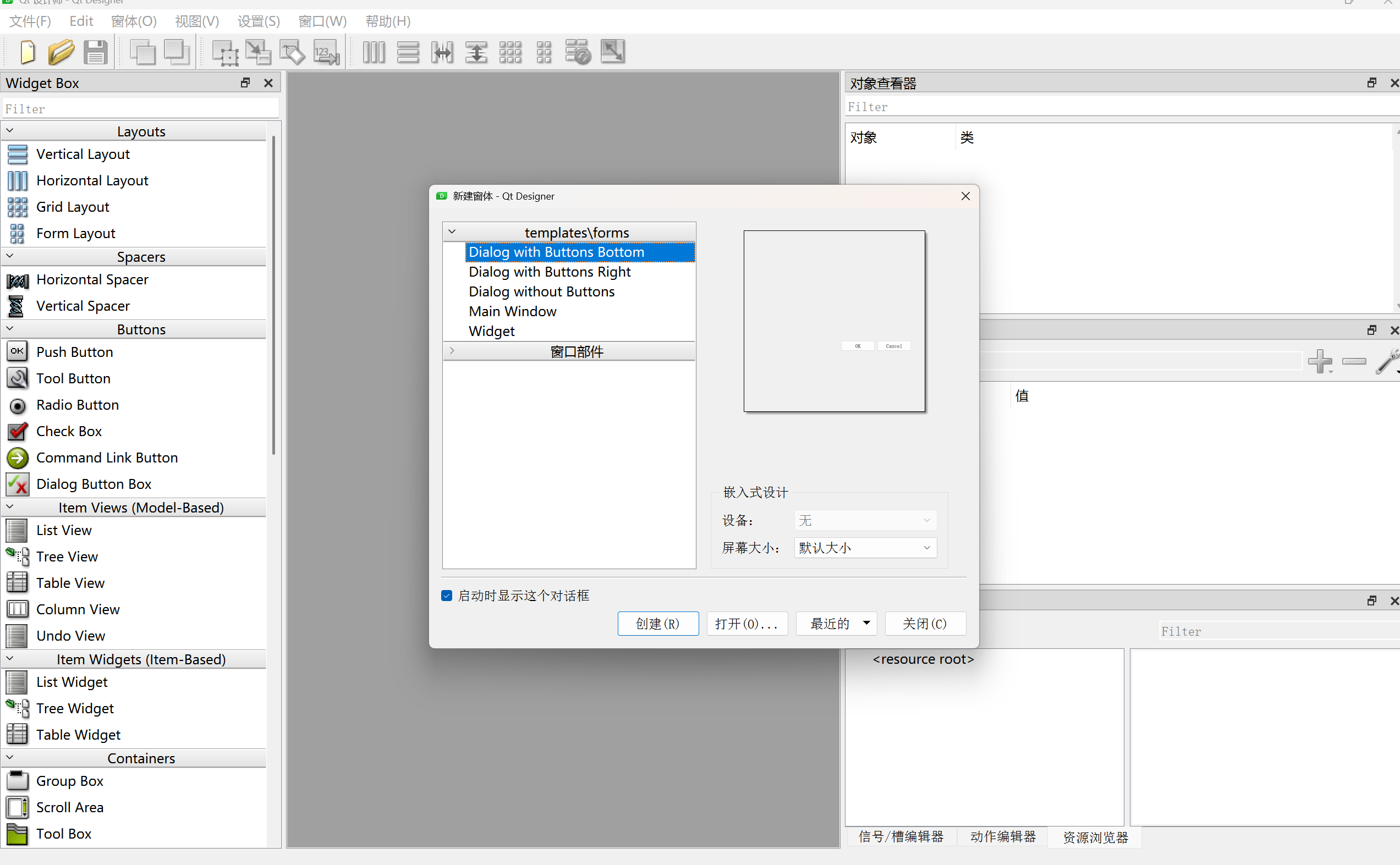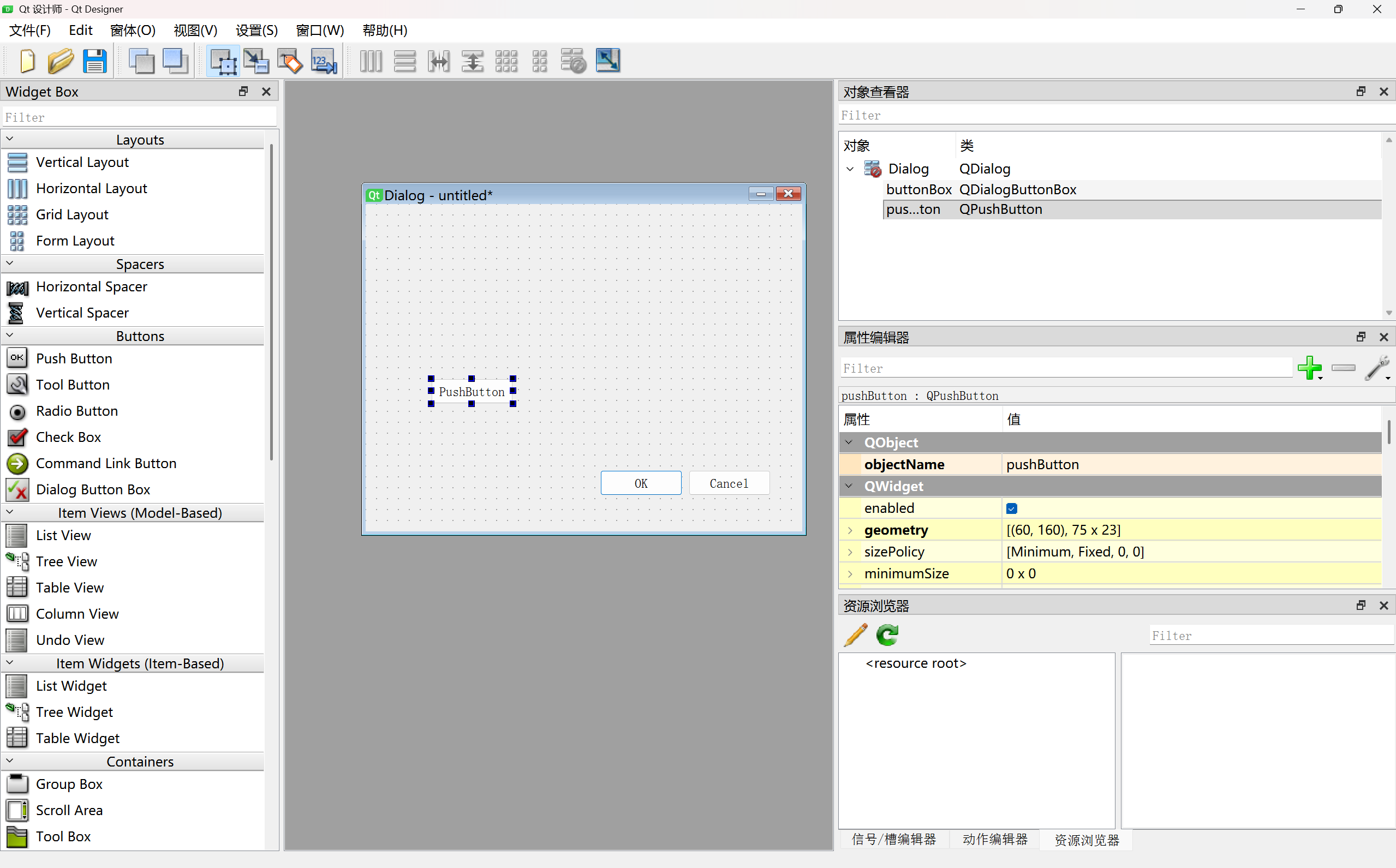 通过拖动左侧的widhet box下的控件为窗口添加内容,点击保存可以将内容保存为.ui的文件