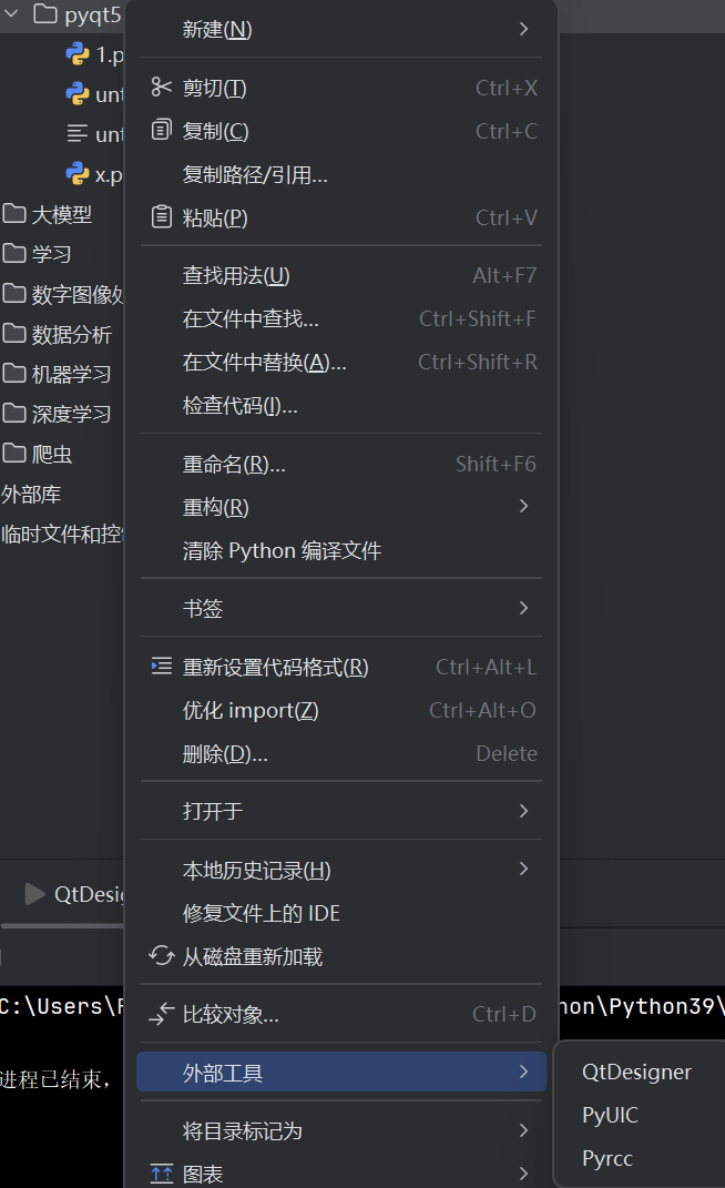 为了使用可视化界面设计工具,建议安装pyqt5-tools包: