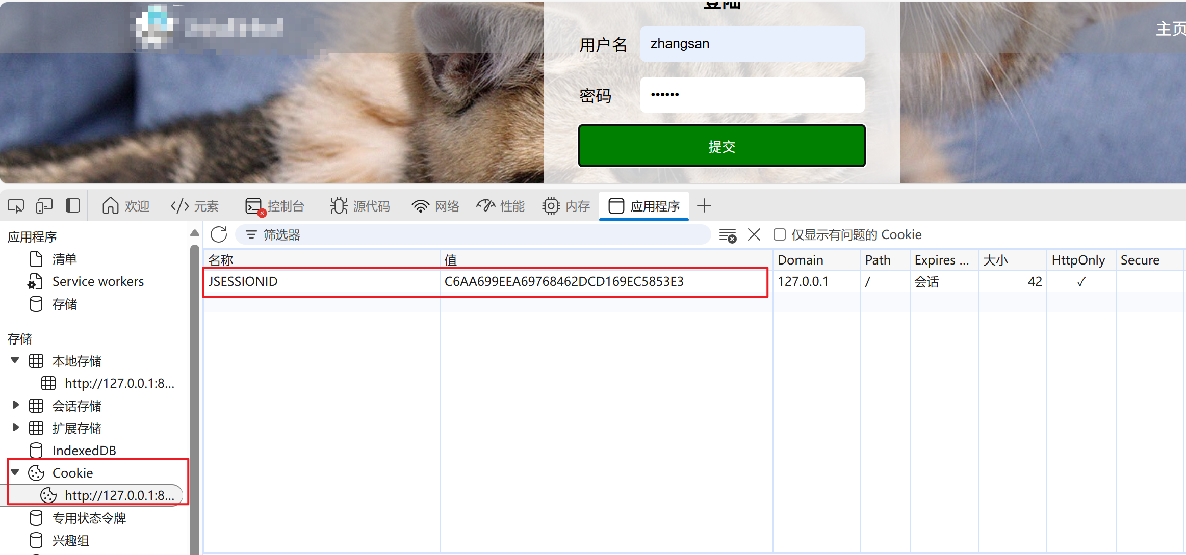 提交用户名和密码的时候,生成一个 Cookie: