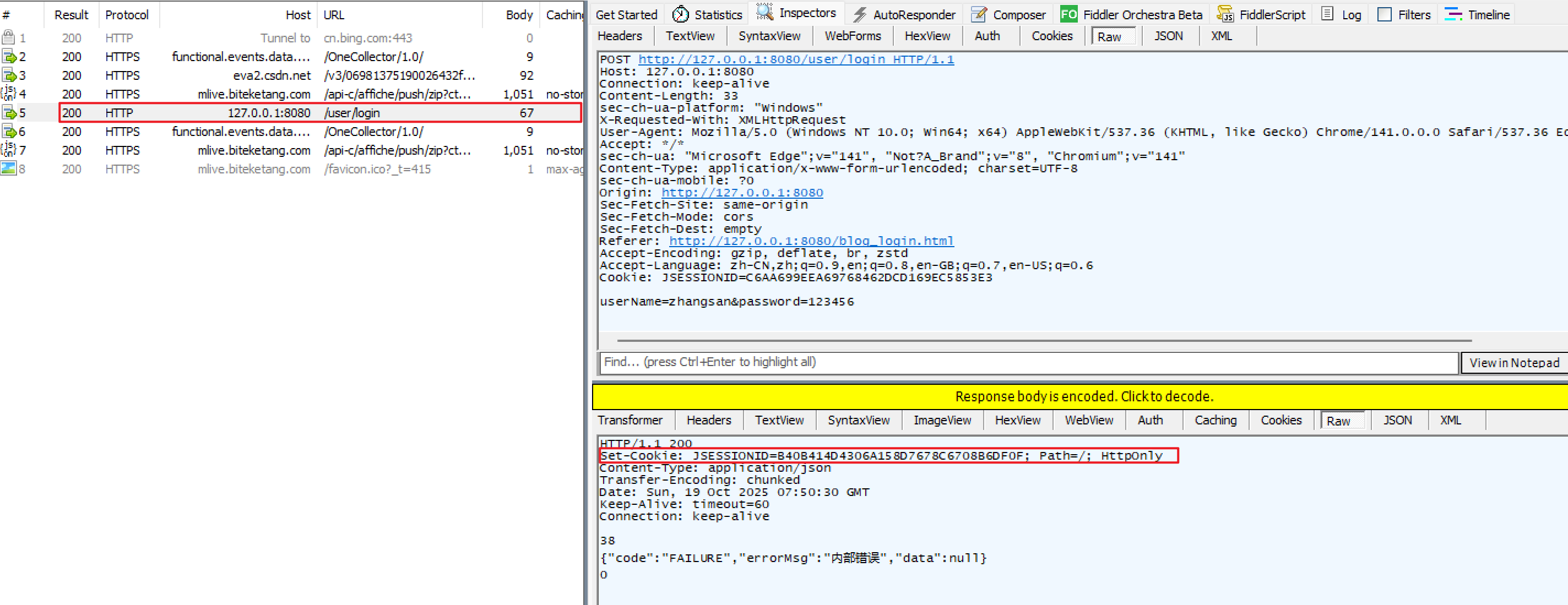 使用 Fiddler 抓包,服务器响应时,响应头会带上 Set-Cookie: