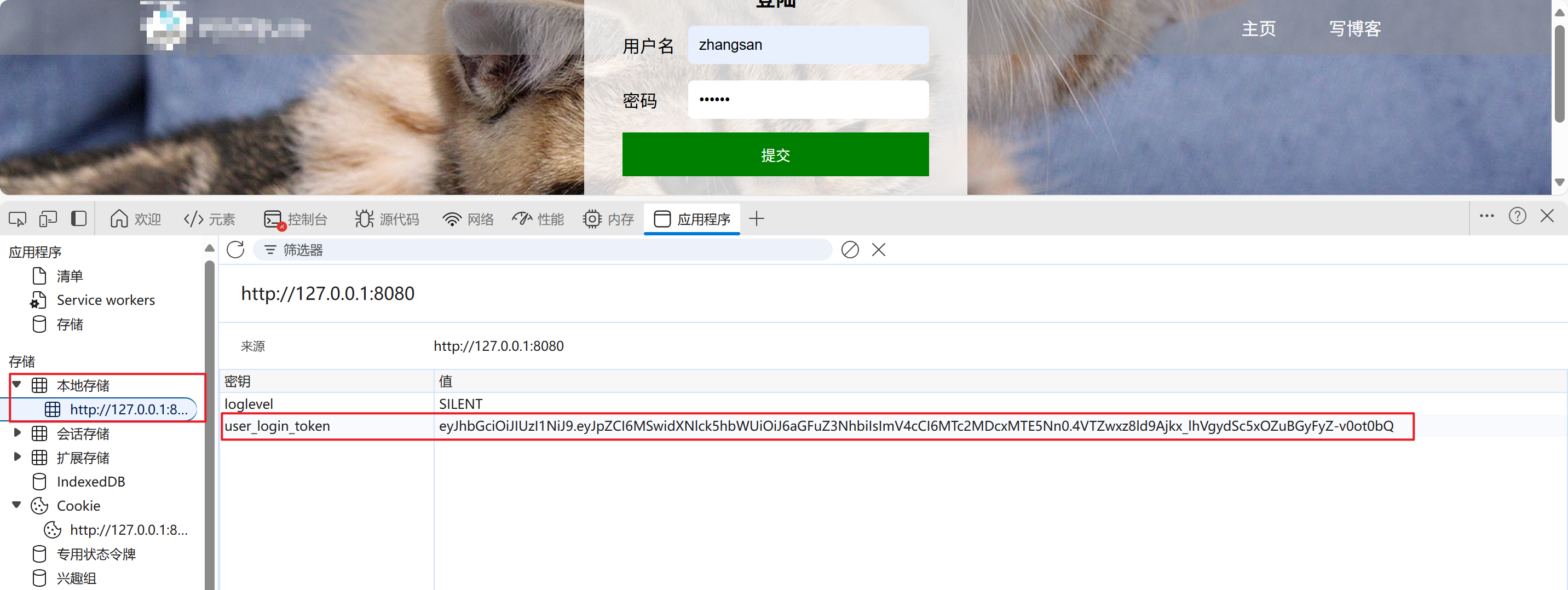 浏览器保存令牌: