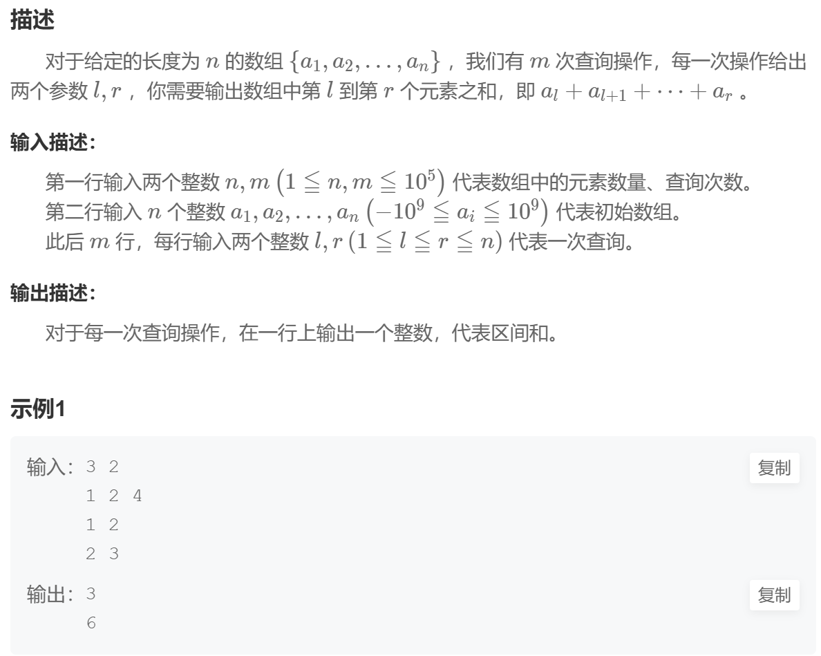题目:【模板】前缀和_牛客题霸_牛客网