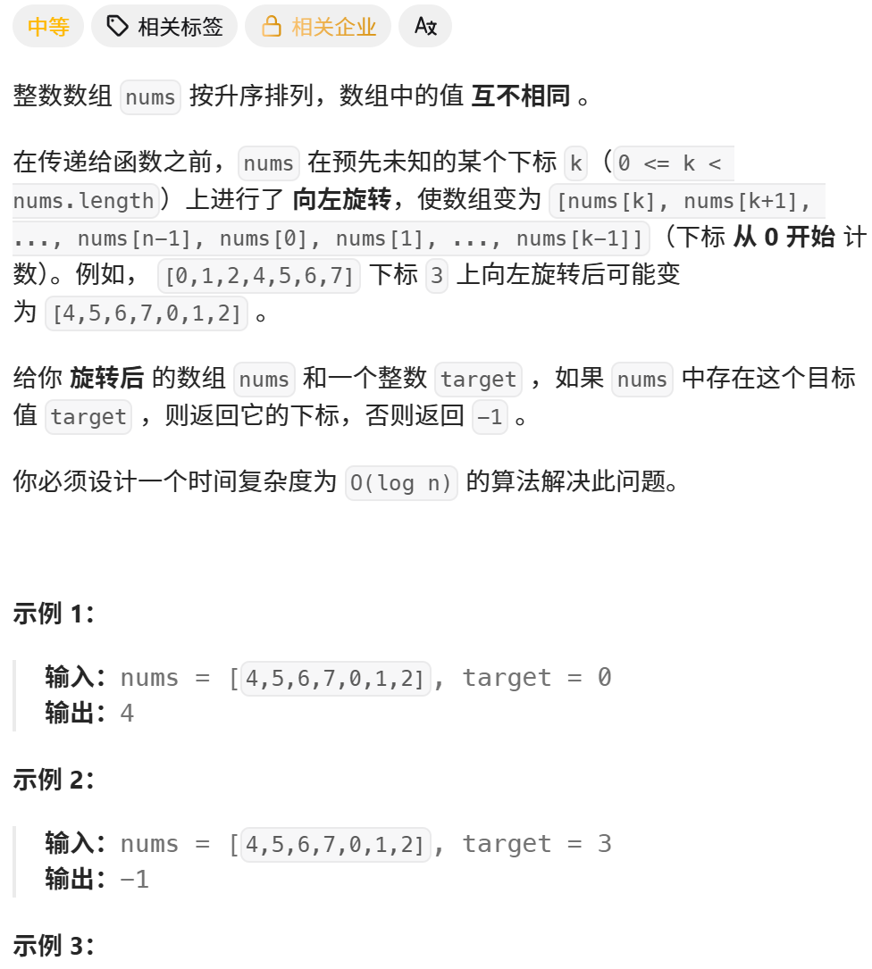 题目:33. 搜索旋转排序数组 - 力扣(LeetCode)