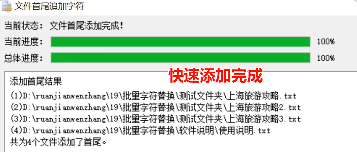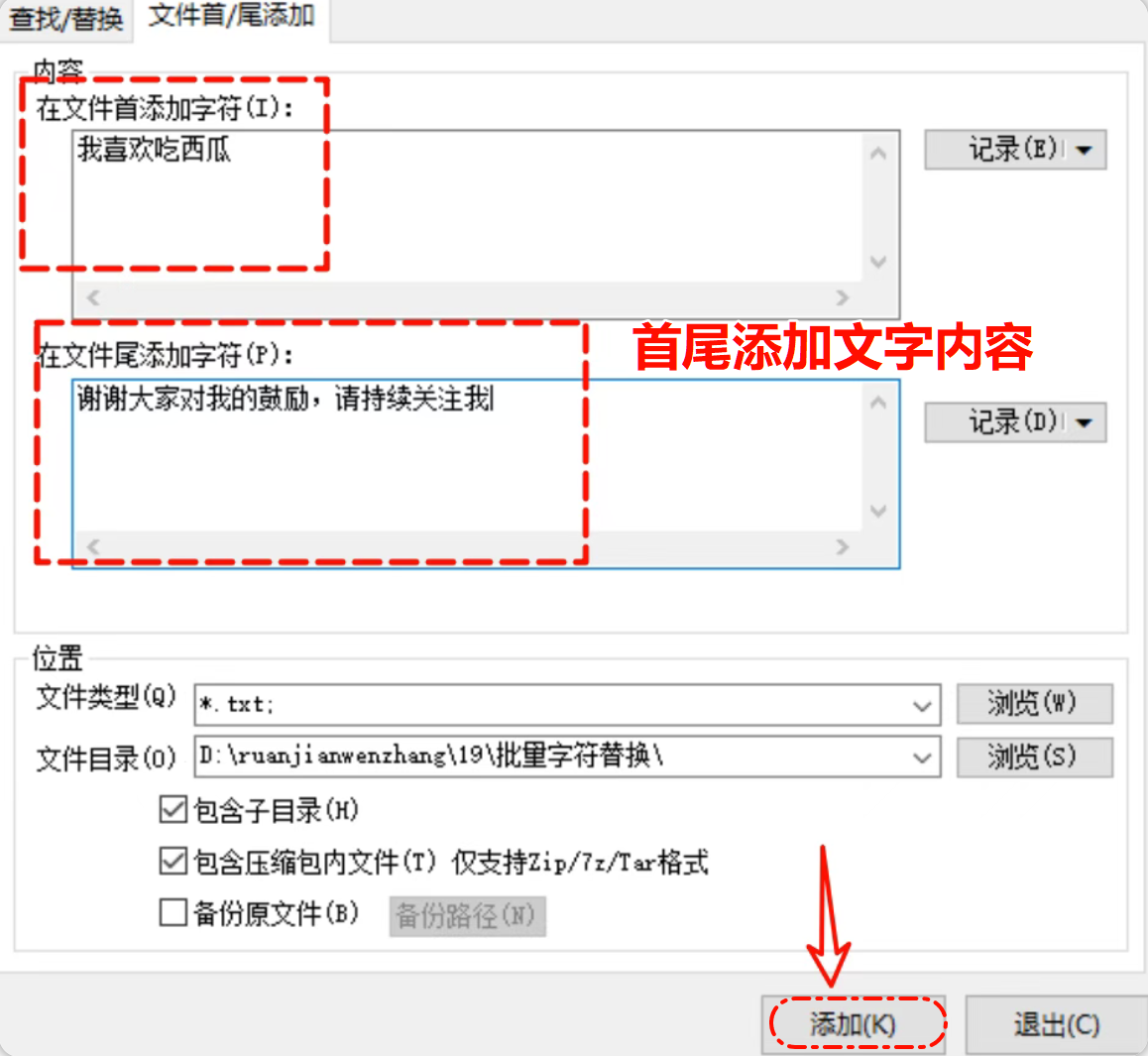 更支持在文件开头或结尾批量追加内容,适合统一添加版权信息、注释标记或脚本头尾。