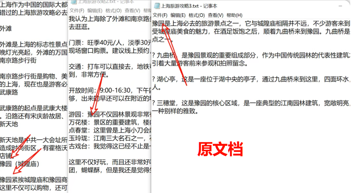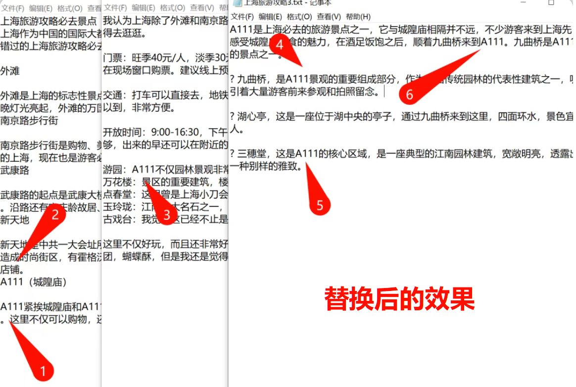 举个场景:三个TXT文件中都包含“豫园”,希望统一改为“A111”。