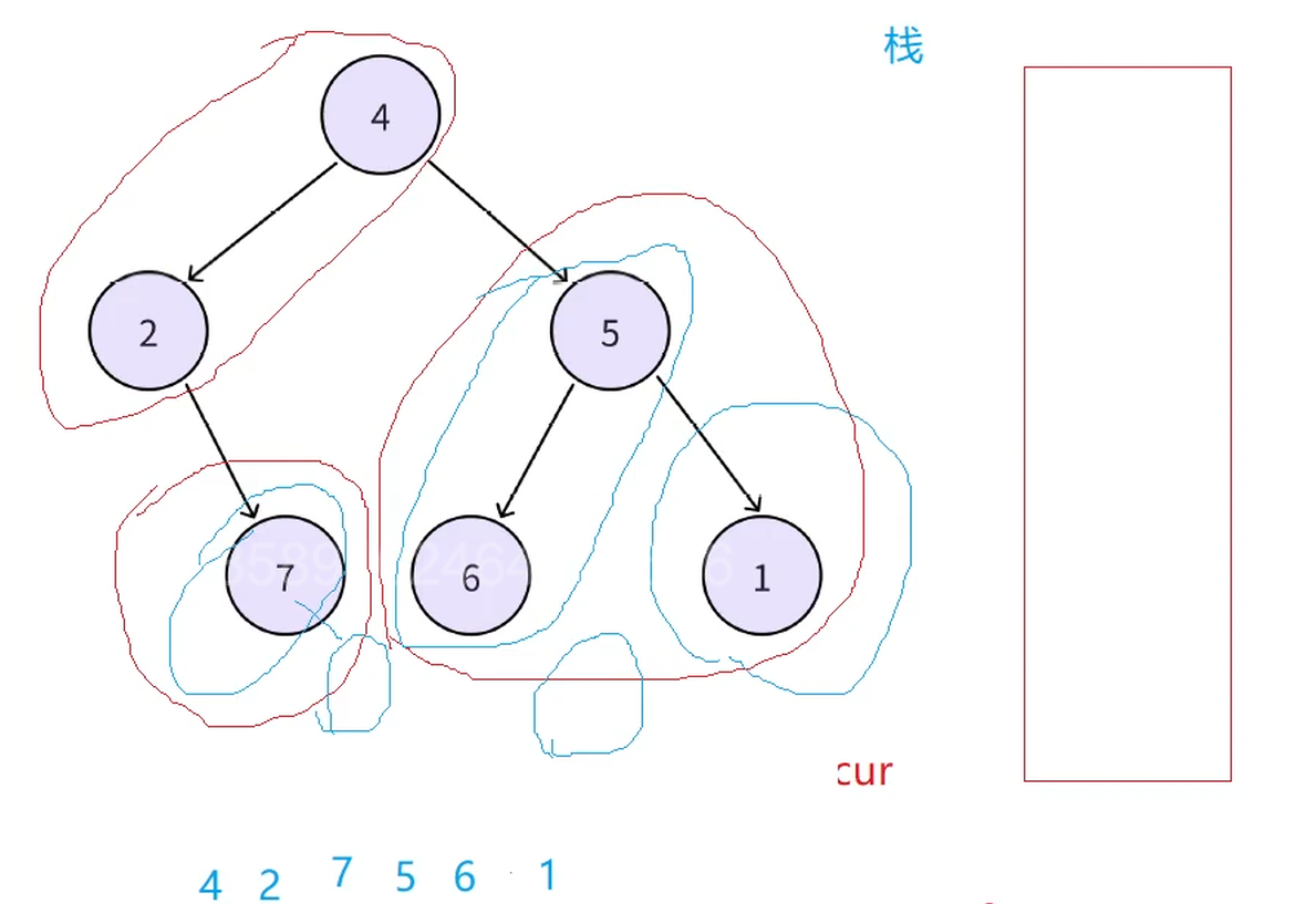 public:vector<int> preorderTraversal(TreeNode* root) {stack<TreeNode*> st;TreeNode* cur = root;vector<int> v;while(cur || !st.empty()){//每次循环开始代表访问一棵树的开始//访问左路结点,左路结点入栈while(cur){v.push_back(cur->val);st.push(cur);cur = cur->left;}//取一个左路结点的右子树出来访问TreeNode* top = st.top();st.pop();//循环子问题的方式访问右子树cur = top->right;}return v;}