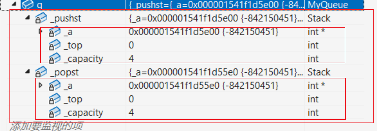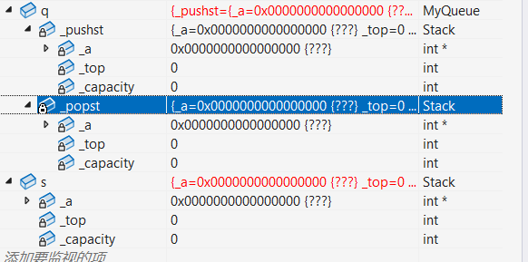 private://自定义类型Stack _pushst;Stack _popst;//内置类型,但很奇怪,混在这里它却能处理,这里大家可以自己去试试//int size = 0;