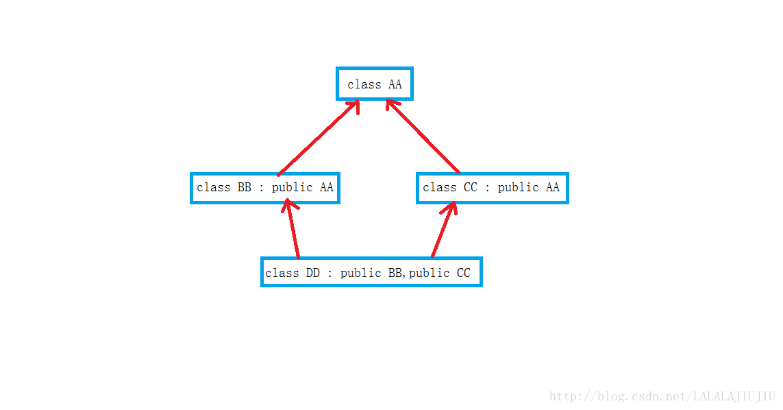 可以看见BB和CC都继承了AA,结果DD右都继承了BB和CC,相当于DD继承了两遍AA