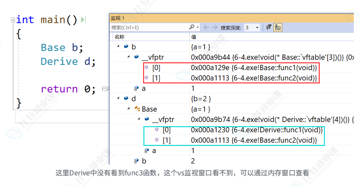 - 派生类由两部分构成,继承下来的基类和自己的成员。继承下来的基类中有虚函数表指针,自己就不会再生成虚函数表指针,但继承下来的基类部分虚函数表指针是自己独立生成的,不是基类的原指针