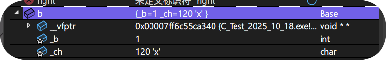 因为除了_b和_ch成员,还多⼀个_vfptr放在对象的前⾯