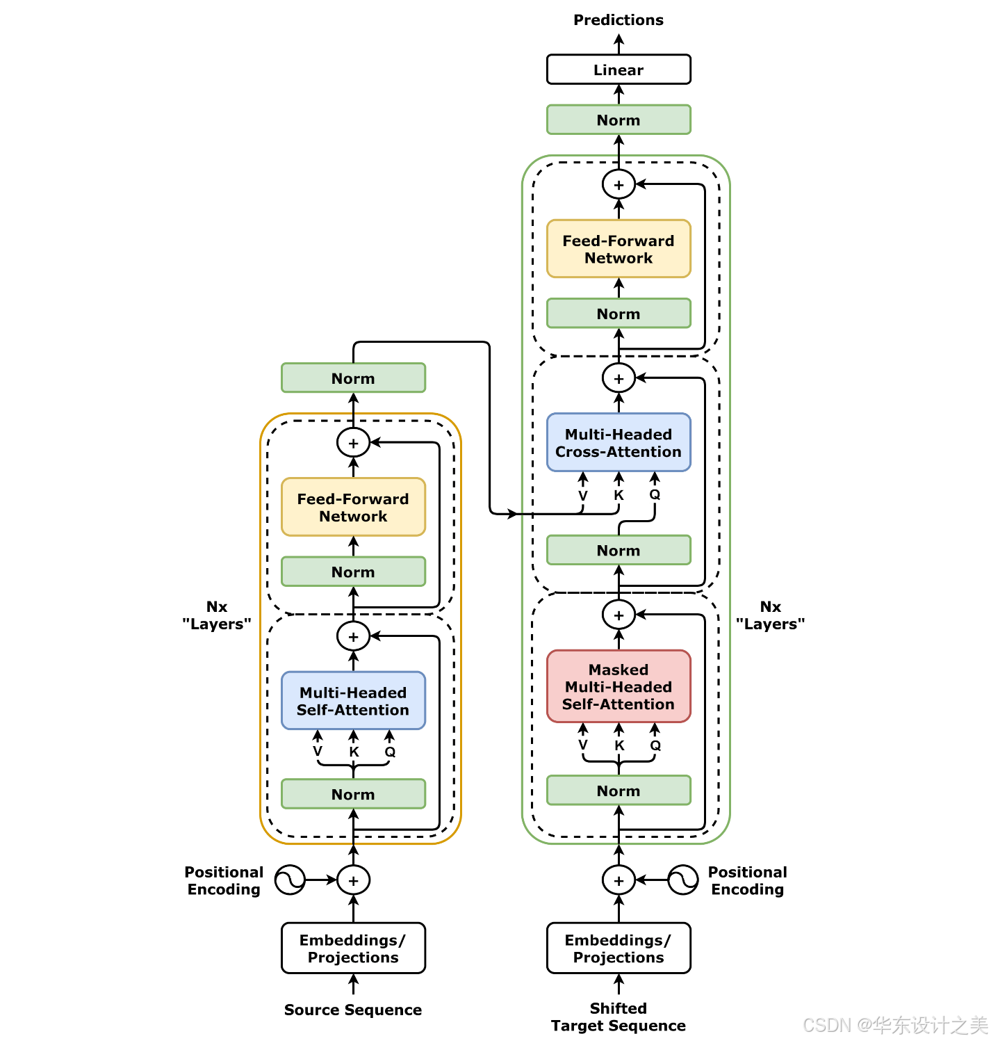 (也有 pre-norm/ post-norm 两种变体,pre-norm 在深层 Transformer 中更稳定)
