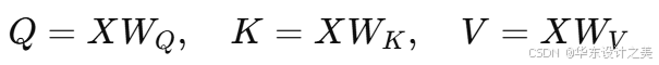 自注意力是 Transformer 的核心单元,通过三个线性变换得到查询Q,键K和值V:
