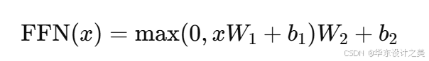每个注意力模块后通常接一个逐位置的两层前馈网络(带非线性,如 ReLU 或 GELU),形式上: