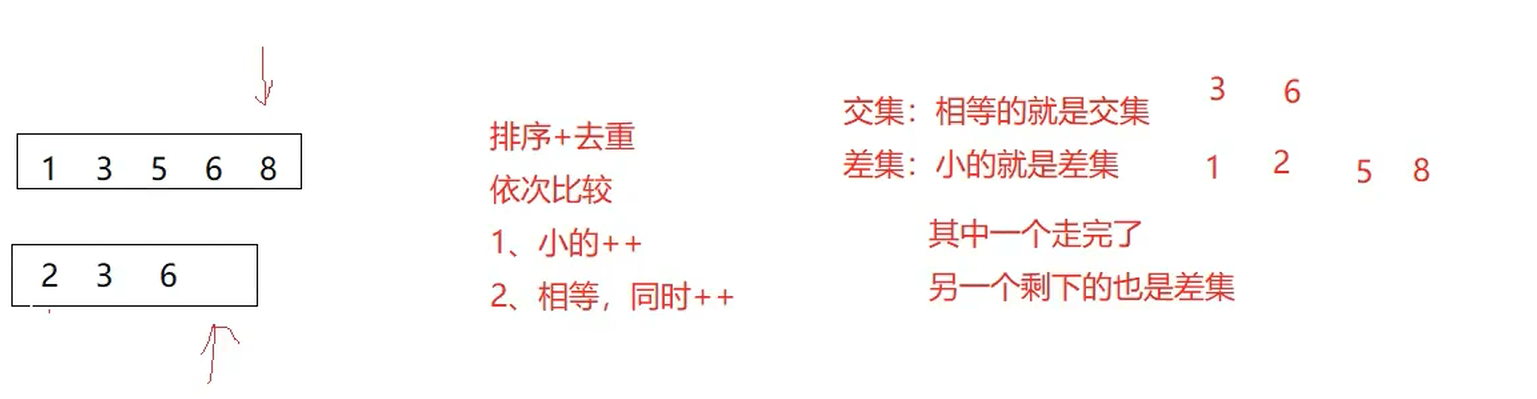 这种算法本质上就是在找 差集和交集 ,时间复杂度是O(n)