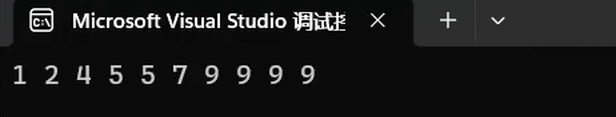 {// 排序multiset<int> s;s.insert(5);s.insert(2);s.insert(7);s.insert(4);s.insert(9);s.insert(9);s.insert(9);s.insert(1);s.insert(5);s.insert(9);auto it = s.begin();while (it != s.end()){cout << *it << " ";++it;}cout << endl;