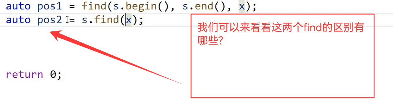 auto pos1 = find(s.begin(), s.end(), x); // O(N)