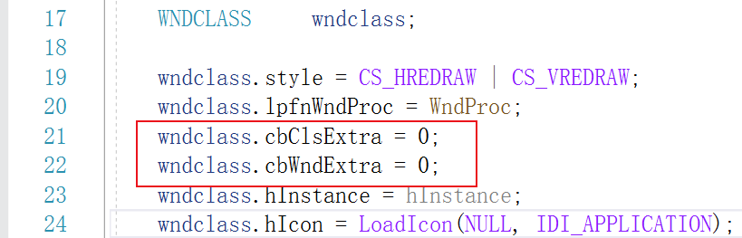 注册了一个窗口类之后,可以用这个窗口类创建出许多的窗口。这个时候,cbClsExtra 字段用来给窗口类预留字节空间,而 cbWndExtra 用来给此窗口类所创建的每一个窗口预留字节空间。
